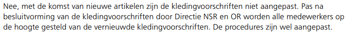Klopt het dat de kledingvoorschriften zijn aangepast?